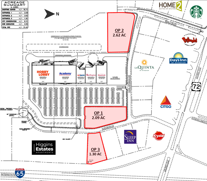 Three outparcels available at Athens, AL's newest retail development featuring national retailers Hobby Lobby, Academy Sports, HomeGoods, PetsMart, & Burlington. Outparcel 1: 2.09 Acres Outparcel 2: 2.62 Acres Outparcel 3: 1.30 Acres
