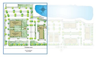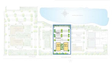 4 bâtiments de plus de 90 000 pieds carrés d'espaces de divertissement, de restaurants, de commerces de détail et de bureaux ancrés par une scène extérieure et une pelouse ouverte.