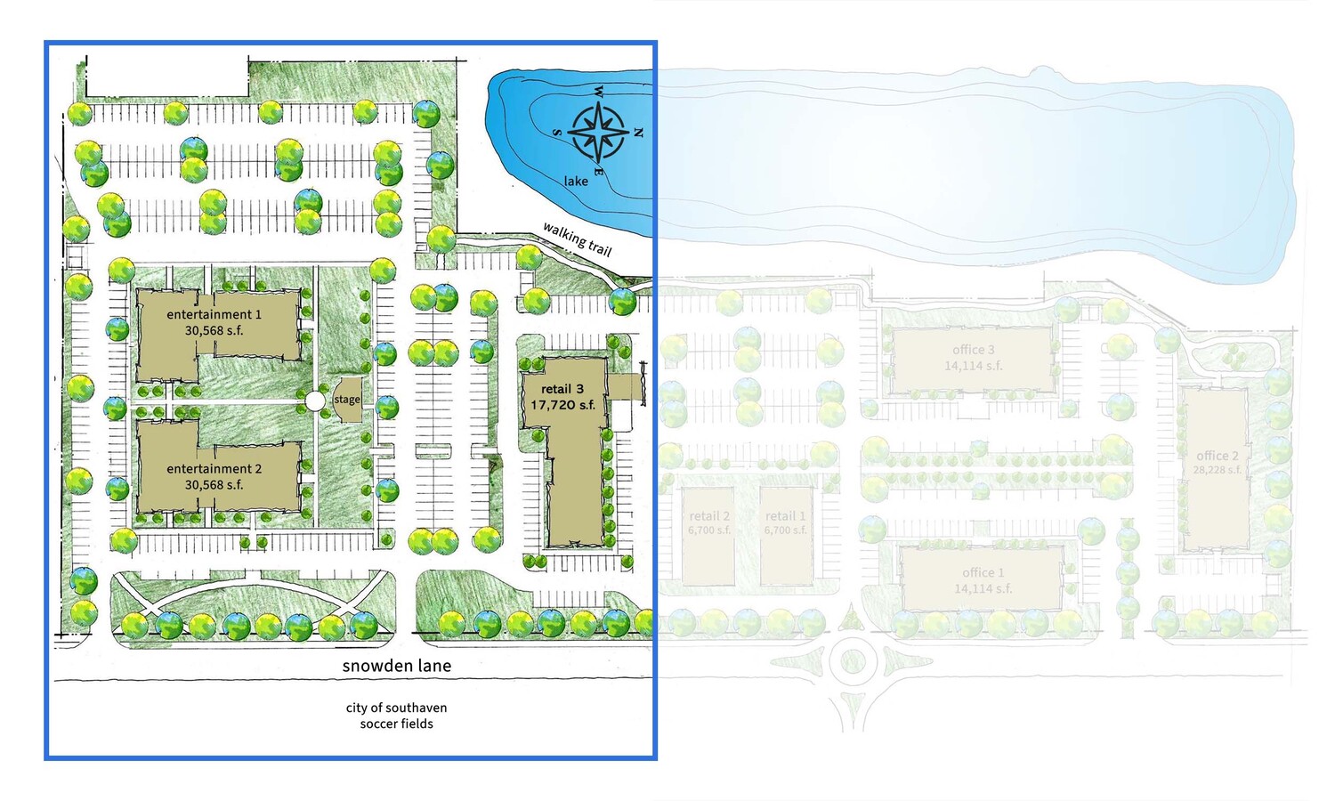 The fourth phase of the 16-acre Top of the Sipp development includes a pad ready leasing spot, ready for multi-level shops and services, retail, commercial, restaurant, or entertainment.