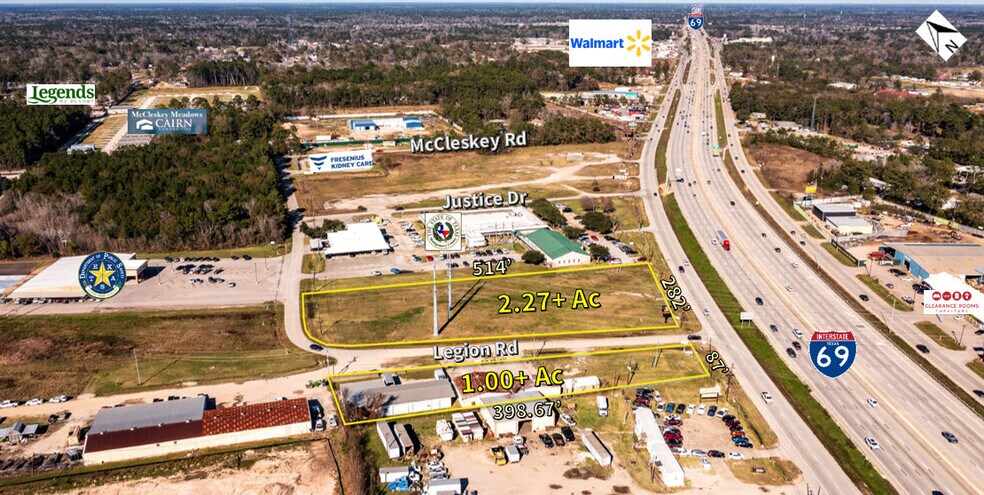 1+Ac Cleared land w' I-69 Hwy 59 Frontage and approximately 302 LF on Legion Rd. Site would be ideal for Retail, Office, Medical or Multi-Family, near Valley Ranch Town Center & Hwy 99 (Grand Pkwy)