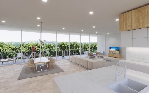 - Construisez six appartements sur trois étages. Chaque unité se trouve à environ 3 100 pieds carrés sous les airs.