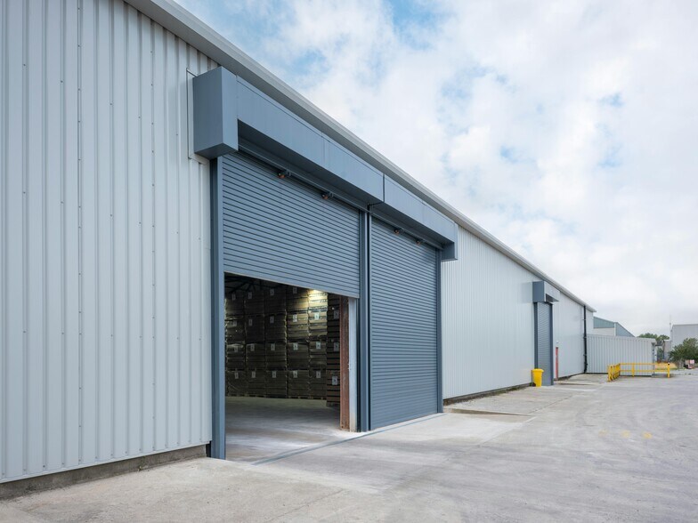 Un espace récemment rénové avec des bureaux et un grand entrepôt à aire ouverte, une hauteur de toit de 7,67 m avec une hauteur minimale de 6 m.