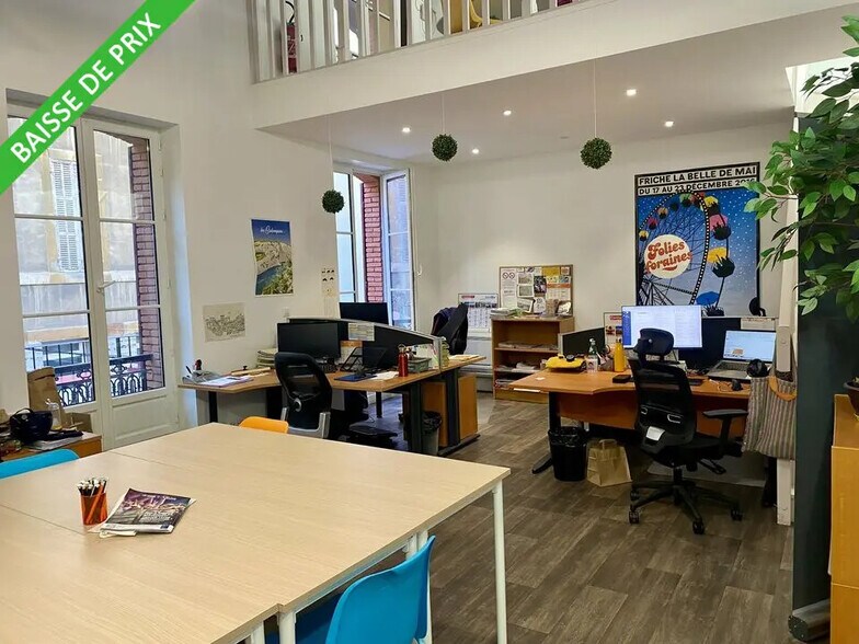 SVRE vous propose à la location, une surface de bureaux de 100 m² sur 2 niveaux. Aux normes PMR, 2 accès, par le RDC et par le R+1. Ces bureaux sont idéalement placés à proximité immédiate des transports en commun et à 5 mn de la Gare Saint Charles. Activités autorisées : tertiaires / services. Activités non autorisées : activités commerciales. Honoraires : 15 % HT + TVA du loyer annuel HC - Type de bail : Professionnel - Durée : 6 ans - Préavis : 3 mois - Fiscalité : TVA - Indice : ILAT - Indexation : Annuelle, date prise effet - Dépôt de garantie : 3 mois - Loyers et charges : Trimestriels et d'avance - Accès PMR - Alarme incendie - Baie de Brassage - Câblage RJ45 - Climatisation - Mezzanine - Sanitaires privés - Immeuble fibré - Réseau de distribution tout équipé pour environ 10 personnes