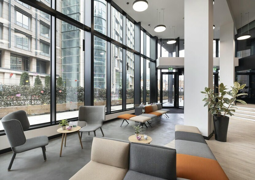 Cet immeuble de bureaux de 11 étages occupe une position privilégiée juste en face de Hammersmith Broadway. Hammersmith est un quartier commercial bien établi qui bénéficie d'une connectivité inégalée avec le centre de Londres et les principaux centres d'affaires du corridor de la vallée de la Tamise. Le Metro Building possède son propre café et se trouve à quelques pas de nombreuses commodités. Profitez de l'effervescence de la cuisine de rue sur Lyric Square, prenez un café ou profitez du cadre paisible de la Tamise. La nuit, les pubs et les restaurants s'animent et vous pouvez terminer votre journée en regardant des pièces de théâtre révolutionnaires au Lyric ou des groupes de musique jouant en direct au légendaire Hammersmith Apollo.