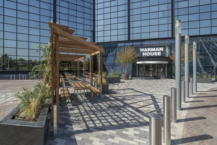 Harman House is a landmark Grade A office building in central Uxbridge adjacent to Uxbridge Underground station and adjacent to the Chimes Shopping Centre and all central Uxbridge amenities.The ground floor reception has been fully refurbished and upgraded including a new business lounge area. A new landscaped seating area has also been created externally at the front of the building offering outdoor amenity for Tenants to enjoy
