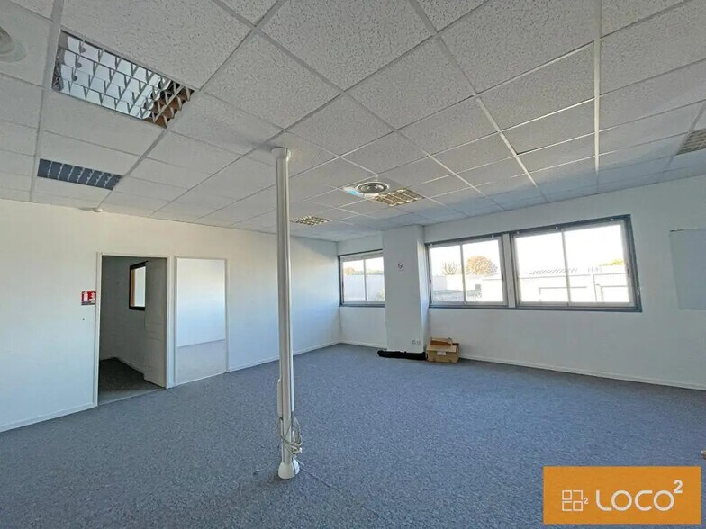 - Bureaux R+1 : Un plateau de 82,01 m² (open space, deux bureaux cloisonnés, sanitaires, moquette, nombreuses fenêtres, possibilité d'aménager une kitchenette). Un plateau de 79,22 m² (open space, sanitaires, revêtement de sol à prévoir). 9 places de parking sont attribuées à ce bien.