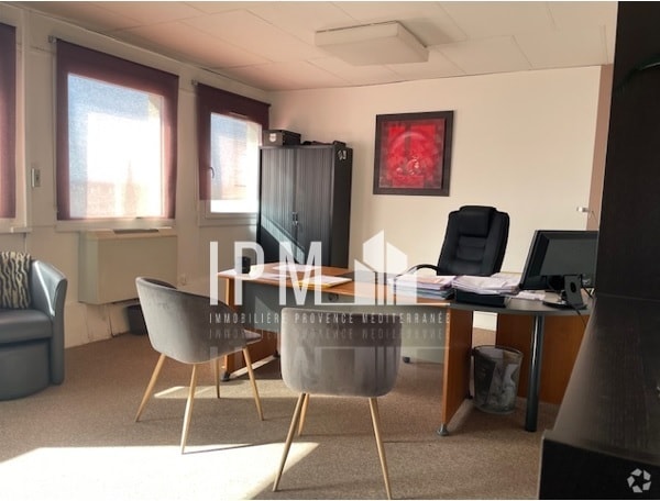 L’agence IPM vous propose à la location des bureaux d’une surface de 193 m2, situés à quelques minutes du centre-ville d’AIX-EN-PROVENCE, dans le quartier en plein renouvellement urbain d’ENCAGNANE. Ce bien situé en étage est traversant, et son exposition permet de bénéficier d’une lumière naturelle et d’une vue dégagée. Il comprend un grand hall d’entrée, 7 bureaux dont un de 24,50 m2, une salle de réunion de 22,50 m2 et un sanitaire privatif. Prestations : sol avec moquette et parquet, dalles de faux plafond, double vitrage avec châssis PVC, chauffage collectif, climatisation, porte blindée, interphone, digicode, ascenseur, ERP5, accès PMR. Environnement de services et commerces. Destination : usage exclusivement professionnel : professions réglementées ou non réglementées, association. Loyer 3 167 € HT/mois Charges 352 € HT/mois (dont eau et chauffage) Foncier 3 110 €/an Dépôt de garantie de 3 mois de loyer Règlement mensuel Honoraires Preneur 15 % HT du loyer annuel HT