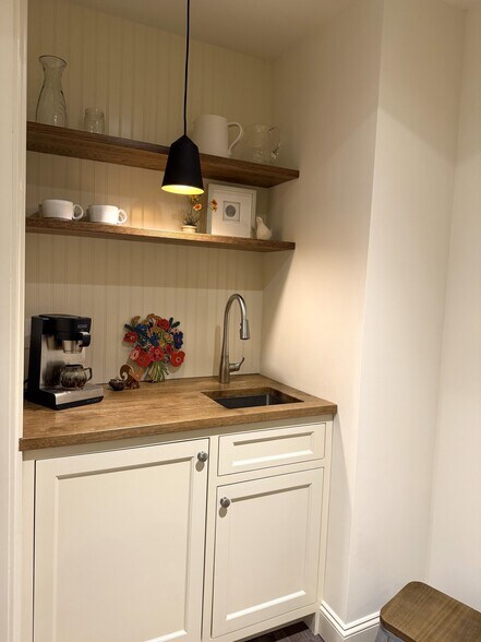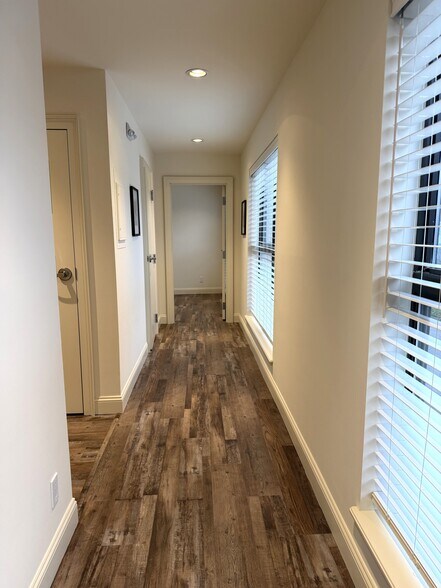 La suite bureautique professionnelle spécialisée entièrement intégrée offre sérénité, sophistication et confort. Il bénéficie de lumière naturelle, de grandes baies vitrées avec stores et étagères personnalisés, de finitions élégantes et d'espaces de travail décorés avec goût avec vue sur Main Street South.