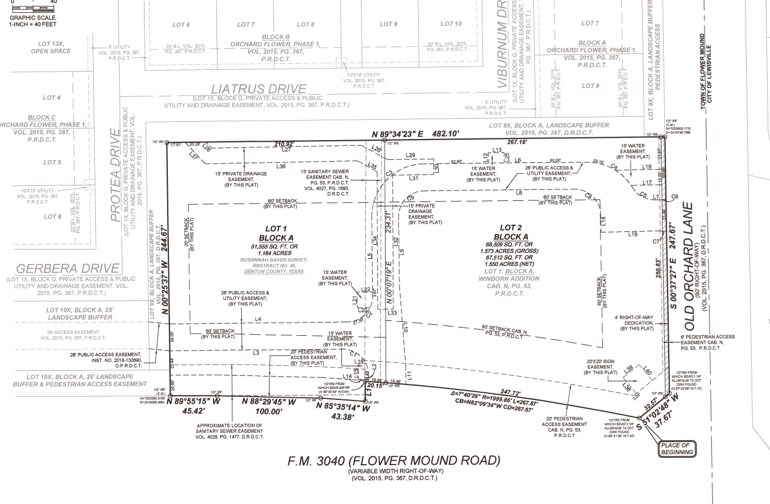Cette propriété est un site commercial PAD de +/- 1,57 acre situé à l'angle nord-ouest de Flower Mound Road et Old Orchard Lane. Situé à un angle dur avec une intersection signalée.