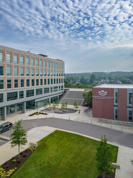 The Georgia Cyber Innovation & Training Center is located in Downtown Augusta, GA, and includes two state-of-the-art buildings that overlook the Savannah River on one side and Downtown Augusta on the other. The building's combination of private sector along with the military, and academic communities makes the Georgia Cyber Center a unique hub for collaborative innovation. Class-A office spaces are available for lease in every size to industry-related organizations. Groups within the Georgia Cyber Center benefit from the adjacent dedicated parking deck and proximity to many pieces of the heart of Downtown Augusta, such as The Augusta Riverwalk, the Augusta Convention Center & Marriott Hotel, and the shopping, dining, and entertainment districts along Broad Street. Partners are eligible for LDCT State of Georgia tax credits while being located in a qualified HUB Zone.