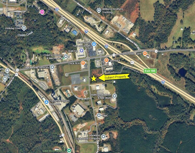 Positioned within the established industrial corridor of Forsyth, this ±2.36-acre commercial land opportunity on Industrial Park Drive offers a highly versatile development site with mixed-use/commercial zoning and all utilities available, allowing for a wide range of potential uses including retail, office, warehouse, or expansion for industrial users. The property benefits from its proximity to major manufacturing and distribution operations such as Perdue Farms and Encore Plastics, creating strong synergy with surrounding industrial activity and an established workforce presence. Located approximately one quarter mile from Interstate 75 (Exit 185), the site offers exceptional regional connectivity for logistics, transportation, and commuting traffic, with daily traffic counts of approximately 94,000 vehicles on I-75 and 4,940 vehicles on Highway 18. With its strategic location in Monroe County, flexible zoning, utility availability, and close access to a major interstate corridor, this property presents a strong opportunity for businesses seeking visibility, accessibility, and long-term growth potential in one of the area’s key industrial and commercial hubs.