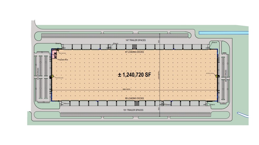 - Site includes 298 trailer and 520 car parking spaces, with a 190-foot truck court depth, designed for efficient logistics operations.