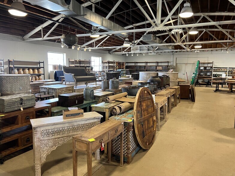 Beautiful, well-maintained showroom featuring an open floor plan, arched exposed roof, and large lot on a signalized corner. Includes a warming kitchen, offices, multiple restrooms, freight elevator, and platform loading docks.