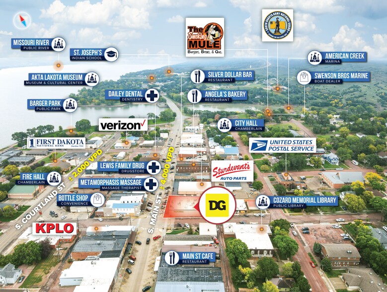 Bang Realty-Dakotas Inc is proud to present the opportunity to acquire a single-tenant Dollar General located at 100 N Main St, Chamberlain, South Dakota. The property was constructed in 2020 and features a ±9,527 square foot building situated on a oversized ±0.22-acre parcel along Main Street in downtown Chamberlain, offering strong visibility and exposure to approximately 11,948 vehicles per day