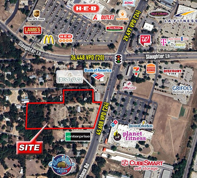 - Subject Property is located on the West side of Manchaca Road just South of Slaughter Lane