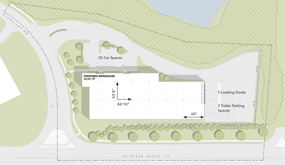 Proposed 39,827 SF warehouse with approved plans for lease. Office space can be built to suit.