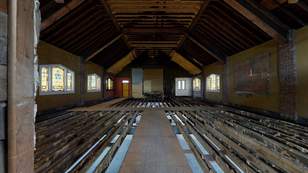 Situated adjacent to Fountain Square, this one-of-a-kind property spans a total of 6,765 square feet across three floors and a mezzanine. The exteriors provide excellent curb appeal, with a well-maintained brick façade, beautiful stained-glass windows, and an eye-catching bell tower. The interiors have been emptied, and the building is ready for remodeling, with all systems removed.