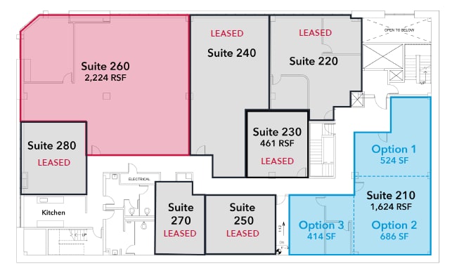 Freshly renovated, and demised multi-tenant office building in the heart of the Tacoma CBD. Convenient access to freeway and public transportation. Parking available at nearby garages. High visibility former bank branch. - Newly Demised Suites - 414 SF - 18,000 SF - Prominent Corner Location - Signage Available - Abundant Parking - Data Room with Equipment