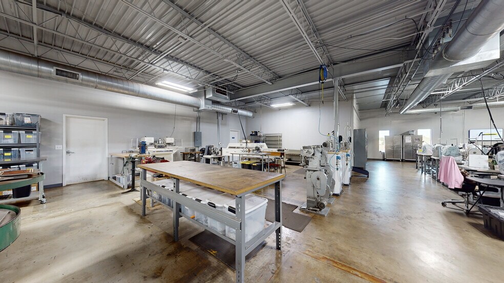 - Warehouse Space: 8,000 sf, climate-controlled, clear-span design with high ceilings and roll-up bay doors.