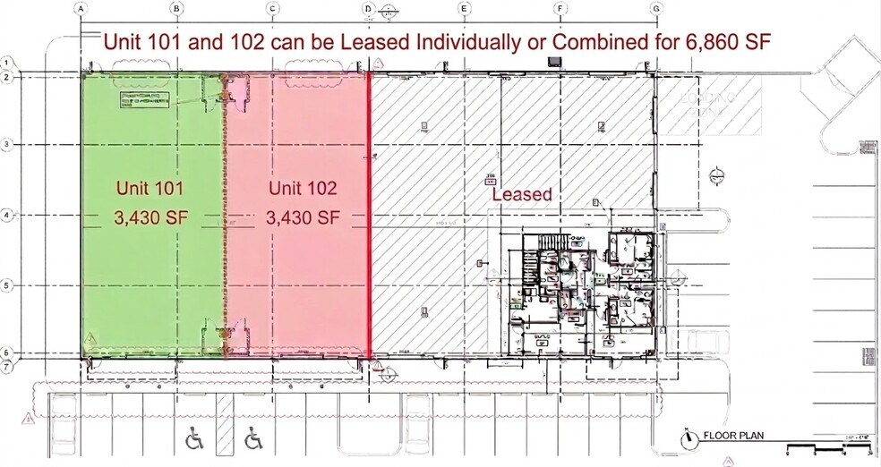 - Units 101 & 102 can be Leased Individually or Combined for 6,860 SF
