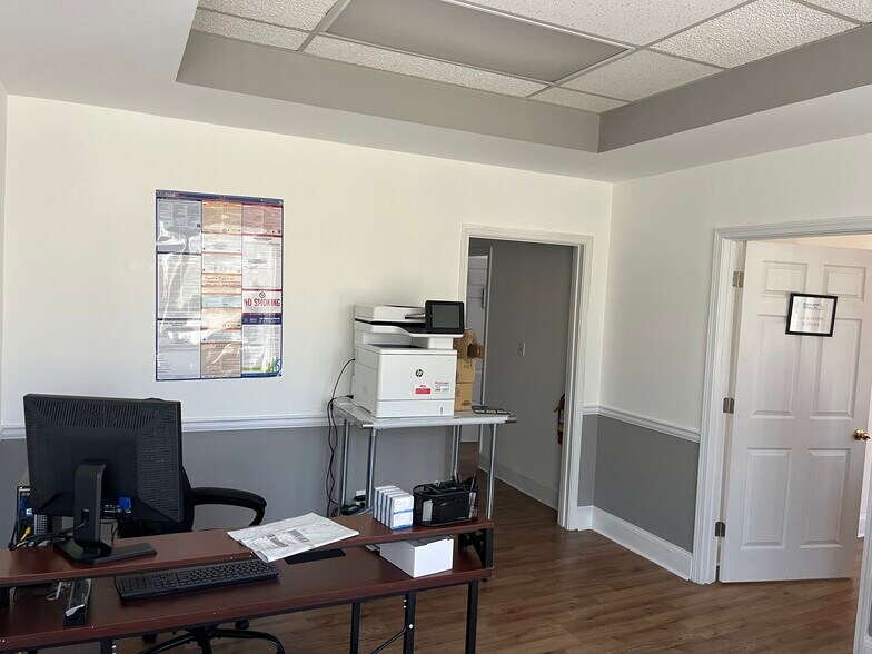 Office boasts reception area, three private offices, conference room, break room, private restroom