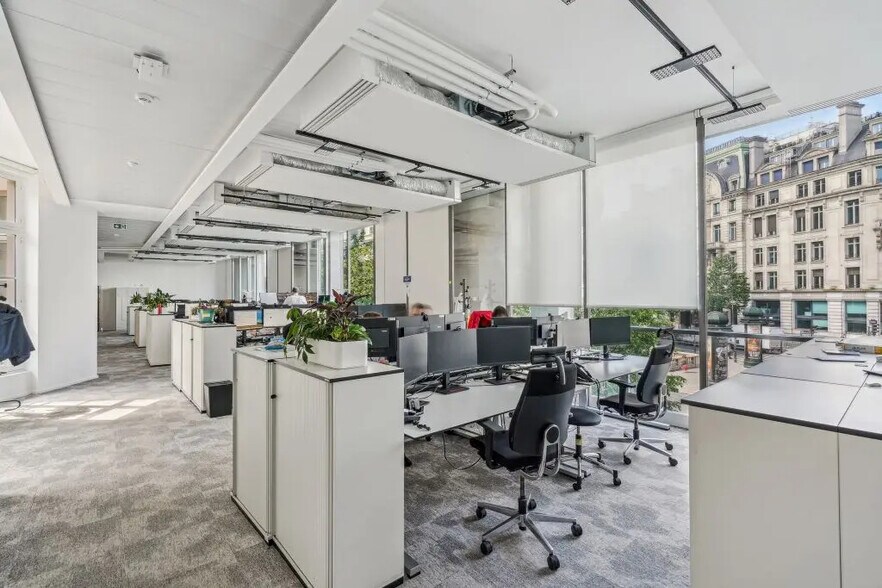 Le bâtiment est situé à l’angle stratégique entre la rue de Richelieu, la rue d’Amboise et le boulevard des Italiens, au cœur d’un secteur emblématique mêlant activité tertiaire, commerces et animation culturelle. L’immeuble s’impose par son architecture institutionnelle et ses prestations élevées, renforcées par un contrôle d’accès complet, une surveillance continue et des parties communes conçues pour accompagner un usage professionnel soutenu. Il dispose de deux ascenseurs et de plusieurs escaliers de service permettant une répartition fluide des circulations. Une cour intérieure, isolée du boulevard, apporte un contraste agréable avec l’intensité urbaine environnante. La localisation offre un accès privilégié aux axes majeurs du centre de Paris, avec une desserte particulièrement dense grâce aux stations Richelieu Drouot, Bourse et Le Peletier situées à quelques minutes. Le quartier bénéficie également d’une concentration notable de restaurants, services et commerces, rendant le quotidien des utilisateurs à la fois simple et dynamique. L’ensemble forme un environnement professionnel attractif, recherché pour son image, sa centralité et la qualité de son adresse.