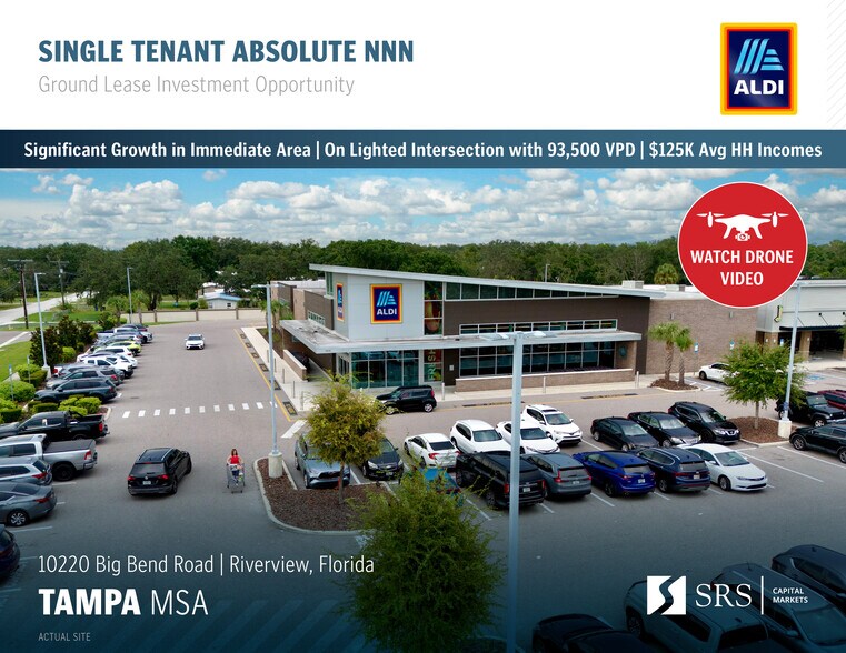 Aldi - Tampa (Riverview) FL 10220 Big Bend Rd Local commercial 2 377 m² À vendre Riverview, FL 33578 3 796 628 € (1 596,91 €/m²) Taux de capitalisation 4,22 %