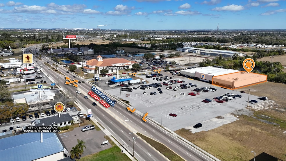 This property offers an 11,945 SF retail sublease opportunity within an ALDI-anchored shopping center in Ruskin, Florida, part of the Tampa Bay MSA. The space benefits from strong visibility along US-41 (North Tamiami Trail), which sees over 28,500 vehicles per day (AADT).