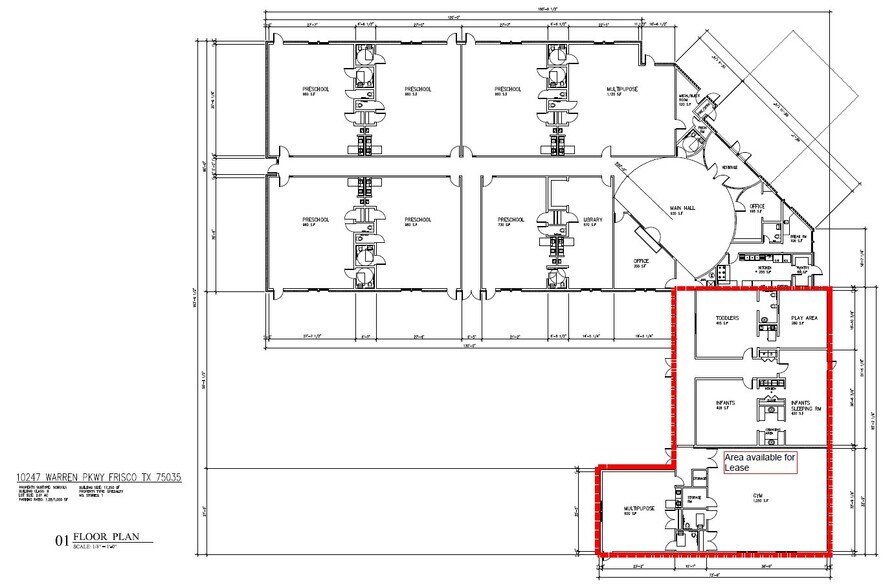 Rooms Breakdown: Gym: 1,250 SF Multipurpose Room: 600 SF Infants Sleeping Room: 420 SF Infants Room: 408 SF Toddlers Room: 415 SF Play Area: 280 SF Washroom attached to all the rooms. Flexible Layout: Open design allows easy customization Private Access: Separate entry/exit for independence and privacy Turnkey Ready: Minimal build-out required Parking & Access: Convenient parking and safe drop-off area Location: High-traffic Frisco corridor with strong visibility and growing demographics