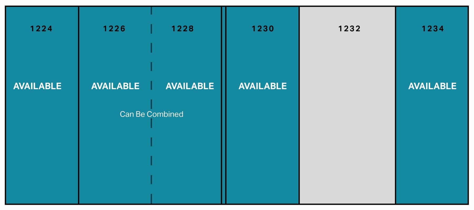 | 1er étage, bureau 1228 | 102 m² | 1-10 Ans | 331,65 € /m²/an 27,64 € /m²/mois 33 892 € /an 2 824 € /mois | Triple net (NNN) |