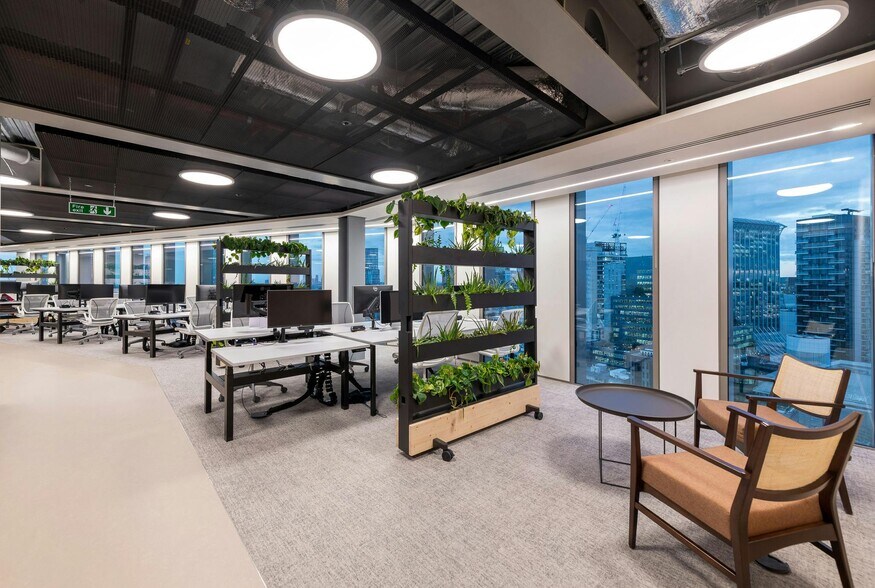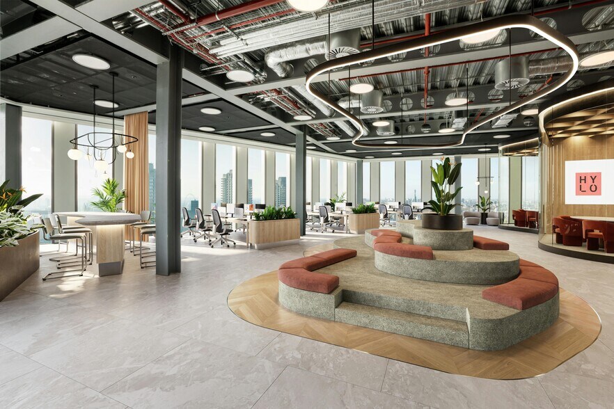 Bienvenue dans le futur lieu de travail de Londres, HYLO : un camp de base pour l'excellence. Conçu par HCL Architects et modélisé par les architectes d'intérieur de Stiff + Trevillion, le bâtiment offre 258 000 pieds carrés de bureaux haut de gamme CAT A et CAT B et 17 000 pieds carrés d'espace commercial. Offrant la plate-forme idéale pour les startups et les marques mondiales, HYLO constitue la destination idéale pour les occupants à la recherche d'un lieu de travail intelligent et moderne conçu dans un souci de santé, de bien-être et de durabilité. Construit pour l'avenir, le projet a renforcé la structure d'origine et ajouté 13 étages supplémentaires pour répondre aux demandes d'occupation, en incorporant quatre terrasses privées et un salon d'affaires commun. L'utilisation de la superstructure du bâtiment d'origine a permis d'économiser plus de 2 500 tonnes de CO2, ainsi que 750 tonnes supplémentaires qui auraient été gaspillées si le bâtiment avait été démoli et reconstruit à partir de zéro. Par rapport à la location d'un nouveau bâtiment, ces initiatives écologiques généreront des économies de carbone d'environ 25 % par rapport à un bail classique de 10 ans. Bénéficiant d'une note BREAAM d'Excellent, d'une note EPC A et d'émissions de CO2 inférieures de 35 % à la partie L de 2013. L'attention portée à la conception du bâtiment a été largement récompensée par divers prix décernés à HYLO en 2022, notamment le RICS Award du meilleur développement commercial, le Supreme Award for Structural Engineering Excellence, le Tall Building Award du meilleur bâtiment à usage mixte et le Winner of Winners Award décerné par les Tall Building Awards, faisant de HYLO le futur lieu de travail de Londres. Déplacez-vous facilement grâce à d'excellentes installations de fin de trajet, notamment 30 douches, 407 supports à vélos, 397 casiers, des vestiaires de qualité hôtelière, des stations de service pour vélos, des points de boisson et une entrée dédiée. L'accès aux transports en commun est également inégalé, avec trois gares principales de Londres, notamment Old Street, Liverpool Street et Moorgate, accessibles à pied depuis le bâtiment. Au cours de la prochaine décennie, la région ouvrira une nouvelle ère en matière de connectivité en devenant une destination Crossrail majeure. L'aéroport de London City est accessible en 38 minutes, et tous les autres grands aéroports de Londres sont accessibles en une heure environ. Les occupants peuvent également utiliser l'application HYLO, ce qui permet aux entreprises avant-gardistes de soutenir plus facilement que jamais leurs ambitions en matière d'ESG et d'environnement de travail grâce à une technologie intelligente et axée sur l'expérience. Les locataires profiteront de plusieurs fonctionnalités interactives qui les aideront à améliorer leur environnement quotidien.