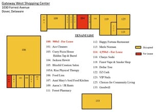 900 sf - $18 NNN ($3.75) Former Yoga studio space High visibility with frontage on multiple high-traffic roads: Beiser Blvd, Forrest Ave, and Saulsbury Rd. Grocery-anchored with a strong tenant mix; Food Lion, Dollar Tree, Merle Norman, Goodwill, and Aaron’s. Significant traffic counts; Forrest Ave – 19,405 VPD & Saulsbury – 15,321 VPD Ample parking with over 900 spaces