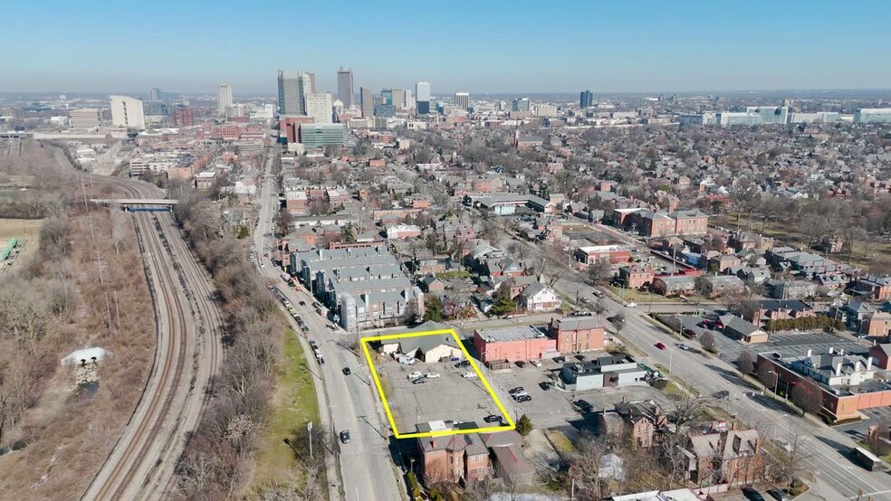 Situé dans le quartier des brasseries. Site de 0,596 acre à l'angle sud-est de la rue S. Front et de l'avenue W. Deshler, délimité par Redbud Alley et S. Wall St.