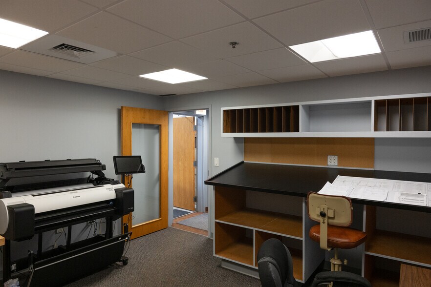 - Three (3) private offices, Front reception / bullpen area