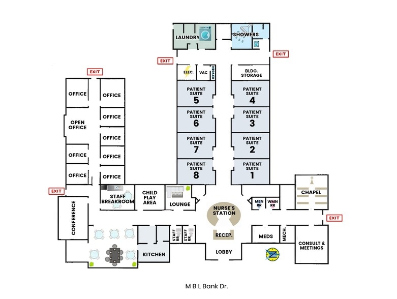 L'établissement offre une excellente accessibilité et se trouve juste à côté de la rue la plus animée de Minden, Homer Road (autoroute 79), près de la partie centrale de Minden, à seulement 4,4 km de l'Interstate 20. Les environs comprennent de nombreuses entreprises, détaillants, cabinets médicaux et installations. La région a connu une croissance économique significative, avec un développement accru des secteurs de la santé et de la médecine. Les soins de santé et l'assistance sociale figurent toujours parmi les principaux secteurs de l'économie de Minden (DataUSA). Le centre médical de Minden, le principal centre médical de la région, se trouve à moins de cinq minutes. Allegiance Health Management et Minden Medical se sont récemment associés pour développer un établissement médical supplémentaire de 7 millions de dollars à 12 minutes de la région de Minden