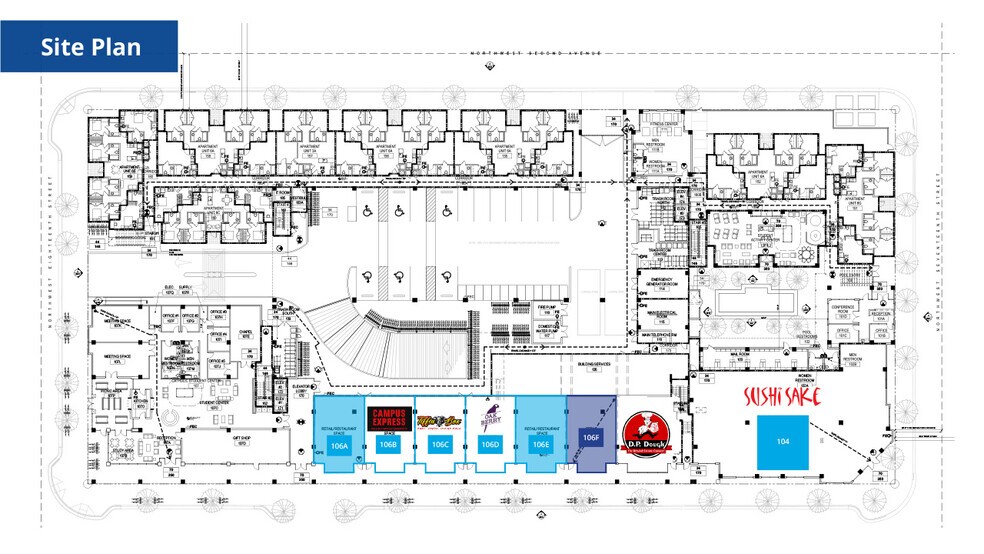 The ground floor retail space at Midtown Apartments is an incredible location with amazing amenities in Gainesville, just one block from the University of Florida campus. With more than 15,000 square feet of configurable retail space at this new, mixed-use residential and retail project, it is built to suit a variety of retail uses. Area co-tenants include Five Below, Insomnia Cookies, Dunkin Donuts, Raising Canes, Wawa and more! The development is more than 90% occupied and features 589 beds and 533 parking spaces.