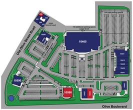 Détails de la propriété : - Densité de population élevée - Accès depuis le siège social de Bayer - Façade sur le boulevard Olive disponible - Rapport de stationnement de 12, 5:1 000 pieds carrés Les détaillants de la région incluent : Panera, California Pizza Kitchen, AMC Theatres, Dierbergs, Schnucks, Walgreens, Jimmy John's, Trader Joe's, Starbucks, Chipotle Mexican Grill, Panda Express et Noodles & Company Nombre de trafic : Olive Blvd : 28 588 VPD