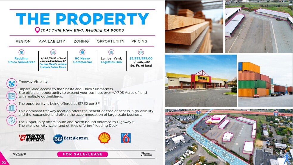 The +/-7.95 acre opportunity boasts over +/-89,318 SF of buildings situated on one of the main freeway arterial traversing California. With its freeway visibility and ease of access this opportunity offers unparalleled projection in the regional marketplace. The former Meek’s Lumber location has high ceilings and offers a large open retail floor. The large lot size allows for room to navigate trucks or large machinery.