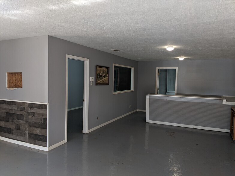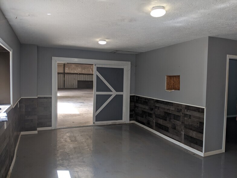 Easy access to hwy 69/59. 1.250 office with 2 bathrooms leaving 3,750 open area. entrance to property can be from booth street also. Has security lights. within city limits.. an additional acre can be purchased. $25,000. down oayment WAC. Owner is a realtor