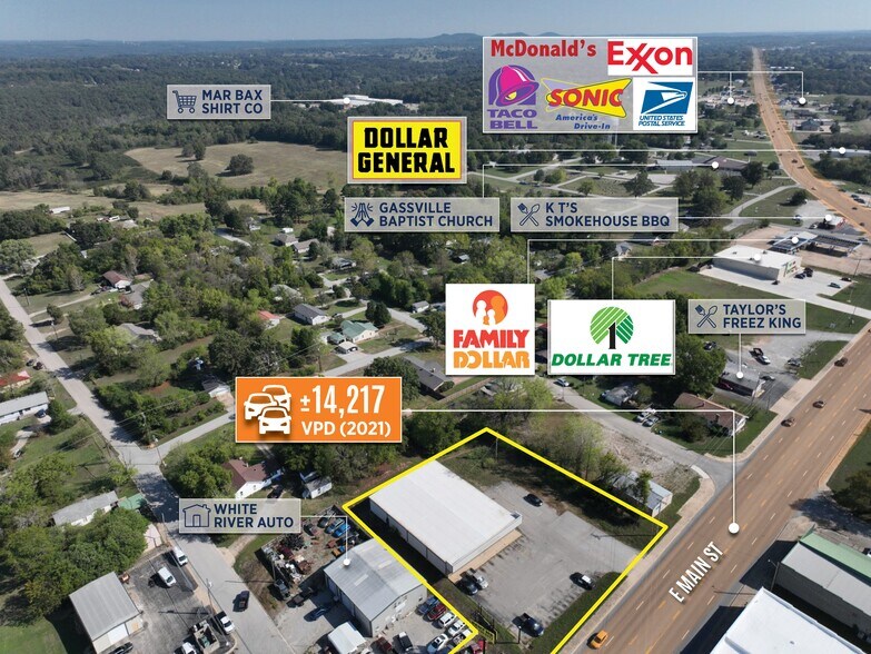 Former Dollar General store with HWY frontage on 62 in Gassville, TN. 7,600 SF clear span building with 3 package unit HVAC. Ample parking and signage pole. Sold as-is or leased in vanilla box condition. .89 acres with good visibility and street frontage. Zoned for retail (S-2). Approx. 15,000 Cars/day