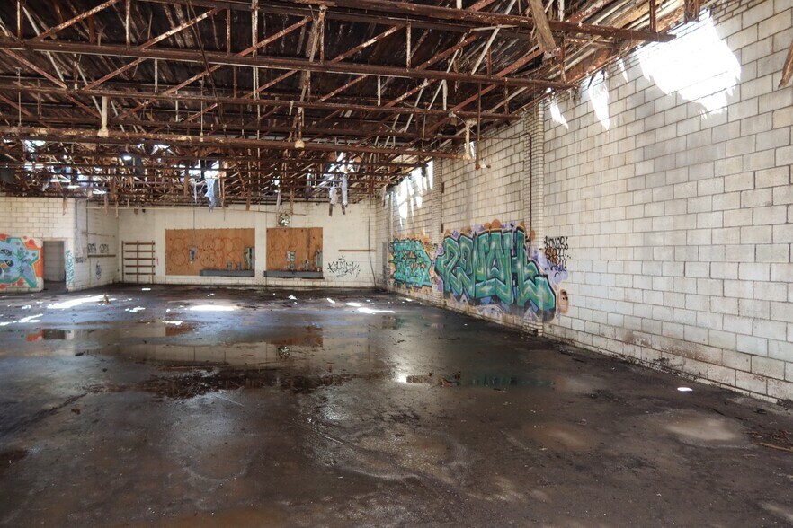 The wide-open floor plan accommodates a range of storage configurations—from vertical pallet stacking to heavy machinery staging—providing exceptional flexibility for various operational layouts. Three convenient drive-in doors allow for efficient access and workflow throughout the building. The warehouse will require a new roof and additional upgrades, presenting an excellent opportunity for customization to meet specific business needs.