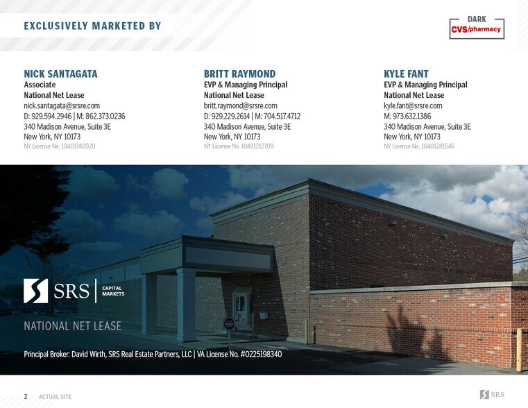 SRS National Net Lease is pleased to present the opportunity to acquire the fee simple interest (land & building ownership) in a CVS property located in Fredericksburg, Virginia. The asset offers approximately 3 years of remaining lease term, providing stable near-term in-place income. The tenant is currently dark, creating a compelling value-add opportunity through future re-tenanting or redevelopment. The existing drive-thru infrastructure enhances flexibility for a wide range of users while reducing future redevelopment costs.