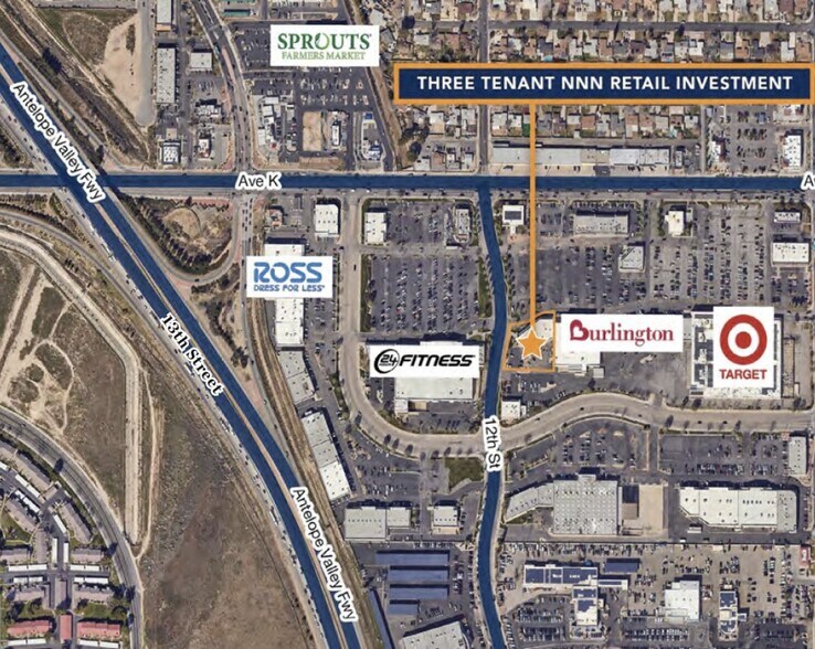 Shops to Burlington 1072 W Avenue K Local commercial 975 m² 100 % Loué À vendre Lancaster, CA 93534 2 067 600 € (2 119,57 €/m²) Taux de capitalisation 8 %