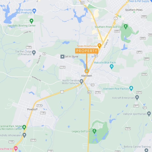 - Près de l'intersection de l'US Hwy 1 et de la NC Hwy 5 dans le centre-ville d'Aberdeen