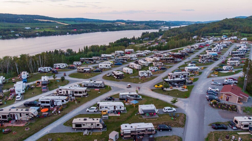 Campground on the shores of Lake Saint-Mathieu, in the Bas-Saint-Laurent region. The lot includes 227 RV sites and 25 tent sites, along with eight cabins and four cottages for lodging.