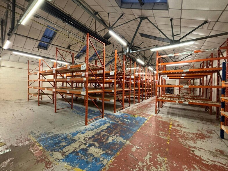 Mid-terraced industrial / warehouse premises of steel portal frame construction with a modern insulated roof.