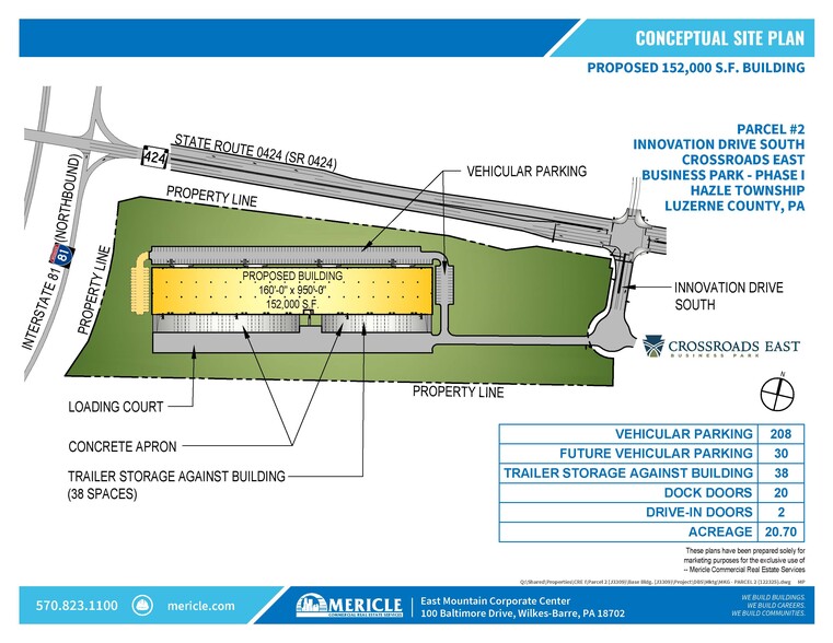 This is a 152,000 square foot (160' width x950' length) multi-tenant industrial flex building under construction on 20.70 acres in CrossRoads East Business Park in Hazle Township, Luzerne County, PA. The site is immediately adjacent to Exit 141 of I-81 and is less than 15 minutes from I-80. The site is in a LERTA Zone - real estate taxes on improvements are 100% abated for 10 years. The site is also within a federal Qualified Opportunity Zone. Mericle Commercial Real Estate Services is very proud to be a long-time developer of Butler® Buildings. As a Butler Builder®, we are part of a network of building professionals dedicated to providing you the best construction for your needs. For more information about Butler' s advantages, please visit butlermfg.com.