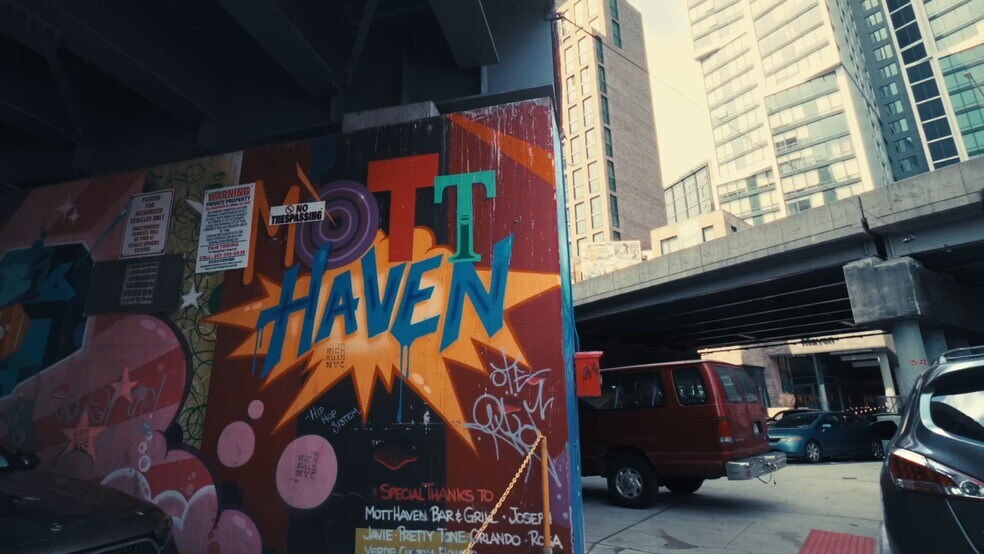 Corner of Bruckner Boulevard and Brown Place in Mott Haven, Bronx. NEIGHBORS include: Amaxx Auto Sales • Shell • Dunkin’ • Storage Post • Doreen Car Wash • Mobil • Advantage True Value • V-Dogg Tattoos • Albama Auto Center
