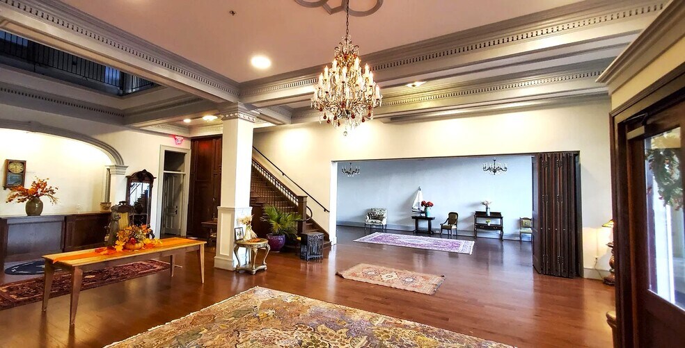 - First floor features event/venue space in the former lobby, kitchen, and dining room