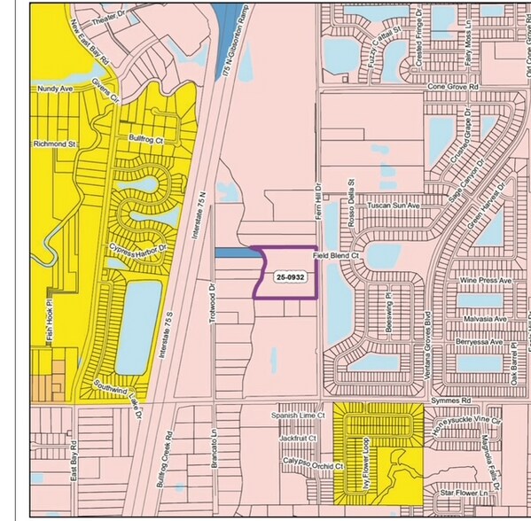 The property at 11133 Fern Hill Drive in Riverview provides a practical development opportunity in a growing area southeast of Tampa. Its proximity to I-75 allows for easy regional access, and the surrounding corridor continues to see steady residential and commercial expansion. Zoning has already been completed, reducing the amount of work required before a buyer can move forward with planning or development. The site is entitled for up to 53 units along with outdoor storage, and the zoning status is turn-key for those uses. Only minor county-level improvements remain, which streamlines the overall development process. Surveys and preliminary wetland delineation lines have been prepared, and final conditions of approval can be provided for review upon request. These items help establish a clearer understanding of the site’s constraints and opportunities, supporting due diligence efforts for various development paths. The area surrounding the property includes established neighborhoods and ongoing construction of new housing, with nearby service and retail uses continuing to expand. Infrastructure improvements throughout the Riverview and SouthShore areas provide additional support for long-term growth. The site’s position just outside Tampa offers access to employment centers while maintaining a more manageable development environment compared to properties within the urban core. Parties seeking additional technical information or documentation may request full survey materials and environmental delineation specifics.